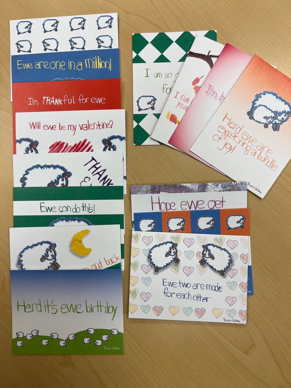 One (1) each of fifteen (15) Ewe note cards for every occasion. Measure 4 x 6, blank inside and with envelope