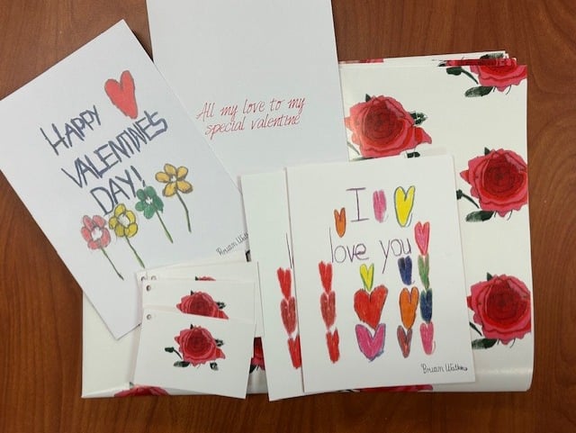 Two (2) Red Rose wrapping sheets, 24" x 36" and four (4) gift tags. One (1) "All my love to my special valentine" greeting card and two (2) I love you note cards